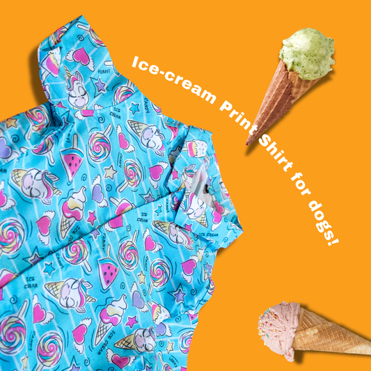 Ice-cream Print Shirt for Dogs, Breathable fabric, Easy wear with Velcro fitting