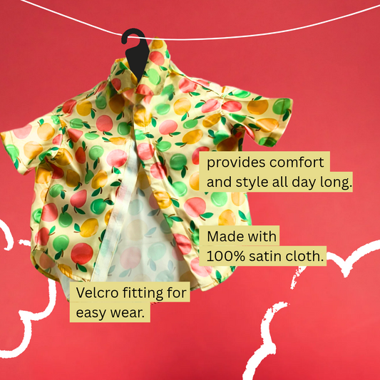 Fruity Apple Print Shirt for Dogs, Breathable fabric, Easy wear with Velcro fitting